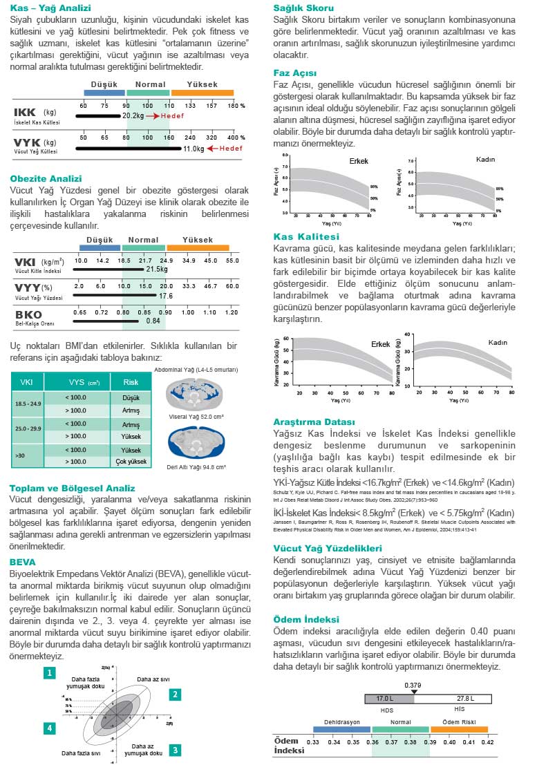Sağlık Skoru | Vücut kompozisyonu sonuçlarının birleşik bir değerlendirmesi |